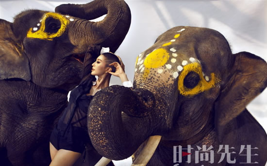 面对如此庞然大物,她没理由不恐惧,虽然她之前做过许多勇敢的事,但直到工作人员亲身试验,确认三头大象听话得像三只小奶猫,她才敢走上前去。拍摄结束后,她熟练地喂给它们香蕉,拍拍它们的头说再见。